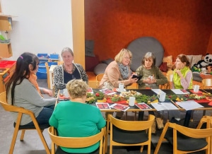 Für das leibliche Wohl war ebenfalls gesorgt: Punsch, Stollen und Plätzchen standen an den schön dekorierten Tischen bereit, dazu wartete auf Jede/Jeden eine liebevoll gebastelter Stern. Vor allem aber war es die herzliche Stimmung, die viele für ein paar Stunden das Alleinsein vergessen ließ.